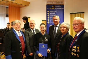 Rahmen des Konzertes wurde Mag. Elisabeth Herbst mit dem Vereinsehrenzeichen in Bronze ausgezeichnet. Claus Königshofer und Mag. Susanne Hafner erhielten von Bezirkskapellmeister Johannes Herbst für
